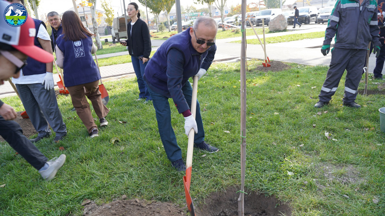 Министр М. Машиев 2025 жылдын 17 октябрында БУУнун Өнүктүрүү программасынын (ПРООН) 60 жылдыгына арналган дарак отургузуу аземине катышты.