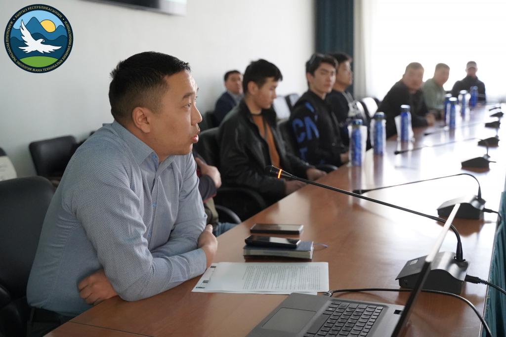 Начальник управления Нурлан Шаршеев рассказал будущим коллегам о предпринимаемых министерством мерах по защите окружающей среды. Особое внимание он уделил превентивным инструментам.