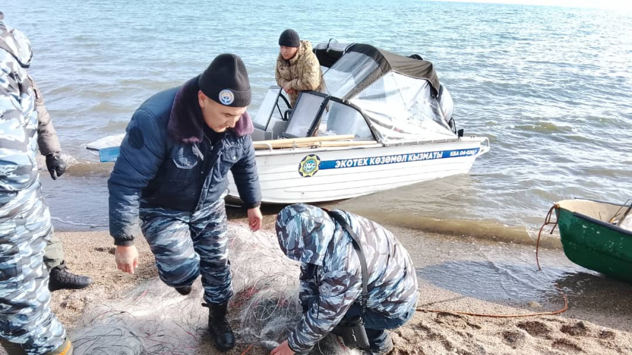 На Иссык-Куле прошёл рейд против браконьерства: изъяты незаконные сети и переданы на утилизацию.