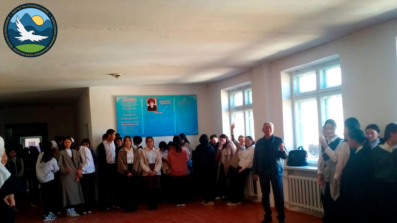 Нарын регионалдык башкармалыгынын мамлекеттик экологиялык экспертиза бөлүмүнүн кызматкерлери тарабынан Кочкор районунун Сары-Булак айыл өкмөтүнүн Шамен жана У.Бейеев, Чолпон айыл өкмөтүнүн А.Мааткеримов, Аблес ууоу Алайдар орто мектептеринде жана Жумгал районунун Чаек айыл өкмөтүнүн Т.Турсунбаева жана М.Алыбаев атындагы орто мектептеринде күз-кыш мезгилинин көйгөйү болгон кара түтүн, атмосфералык абанын булганышы, адам баласынын ден-соолугуна, жашоосуна жана жаратылышка тийгизген таасирлери, кесепеттери, суу коргоо тилкелерин турмуш-тиричилик таштандыдан кантип сактоо керектиги боюнча окуучуларга жана мектептердин жетекчилиги менен от жагуу мезгилинде иш алып барган кызматкерлерге да экологиялык талаптарды бекем сактоо боюнча агартуу иштерин жүргүзүп келишти.