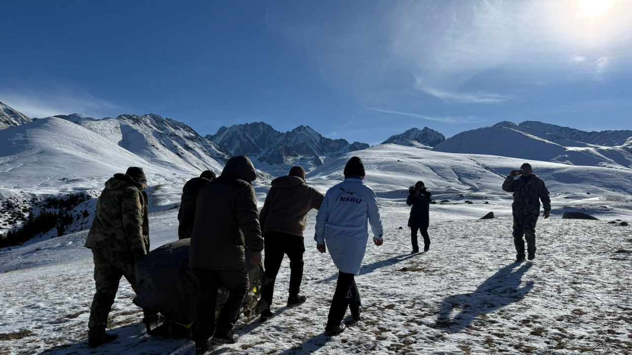 Снежный барс был временно размещен в центре реабилитации диких животных при филиале Германского союза охраны природы (НАБУ) на Сайлуу-терекском пастбище при Чуйской области и после полного ветеринарного осмотра сегодня был выпущен обратно в дикую природу.