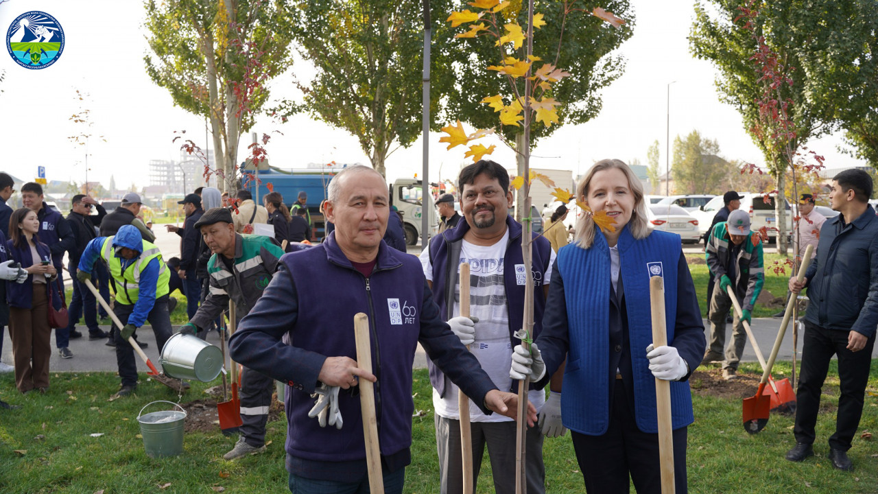 Министр М. Машиев 2025 жылдын 17 октябрында БУУнун Өнүктүрүү программасынын (ПРООН) 60 жылдыгына арналган дарак отургузуу аземине катышты.