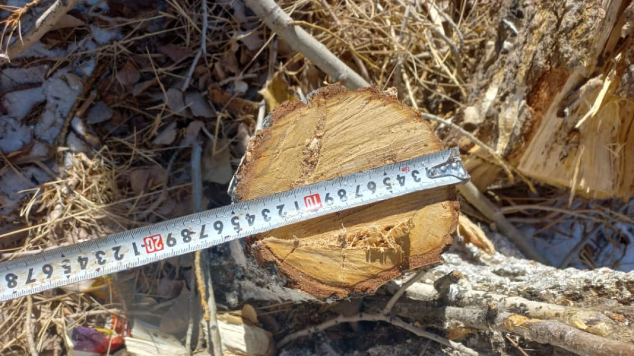 17 ноября 2022 года на территории средней школы им. Казалы Абирова в селе Кенеш Нарынского района Нарынской области при проведении природоохранной контрольной работы государственными инспекторами Минприродресурсов были выявлены факты незаконной вырубки деревьев различного диаметра в количестве 23 штук (12 тополей, 2 березы и 9 вязей).