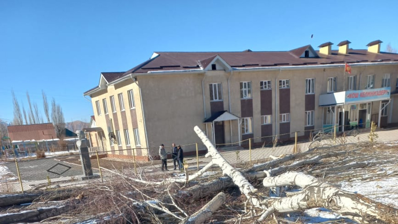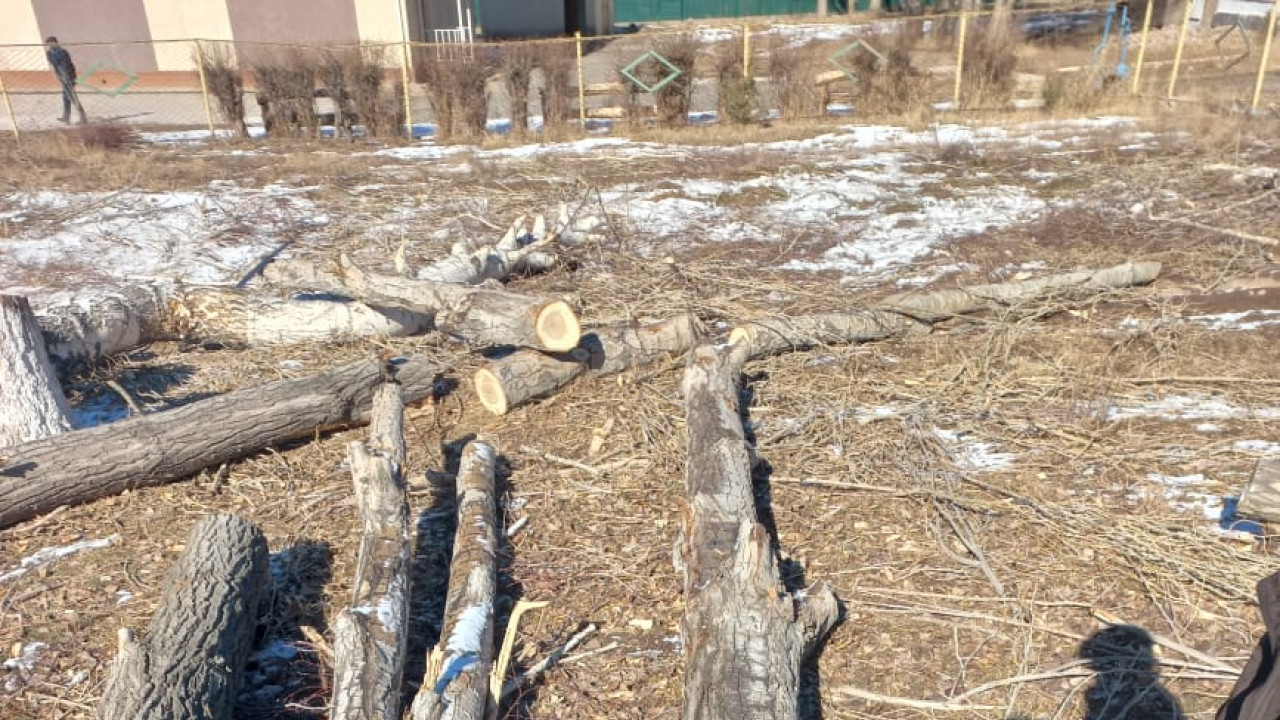 В Нарынской области незаконно вырубили деревья на территории школы