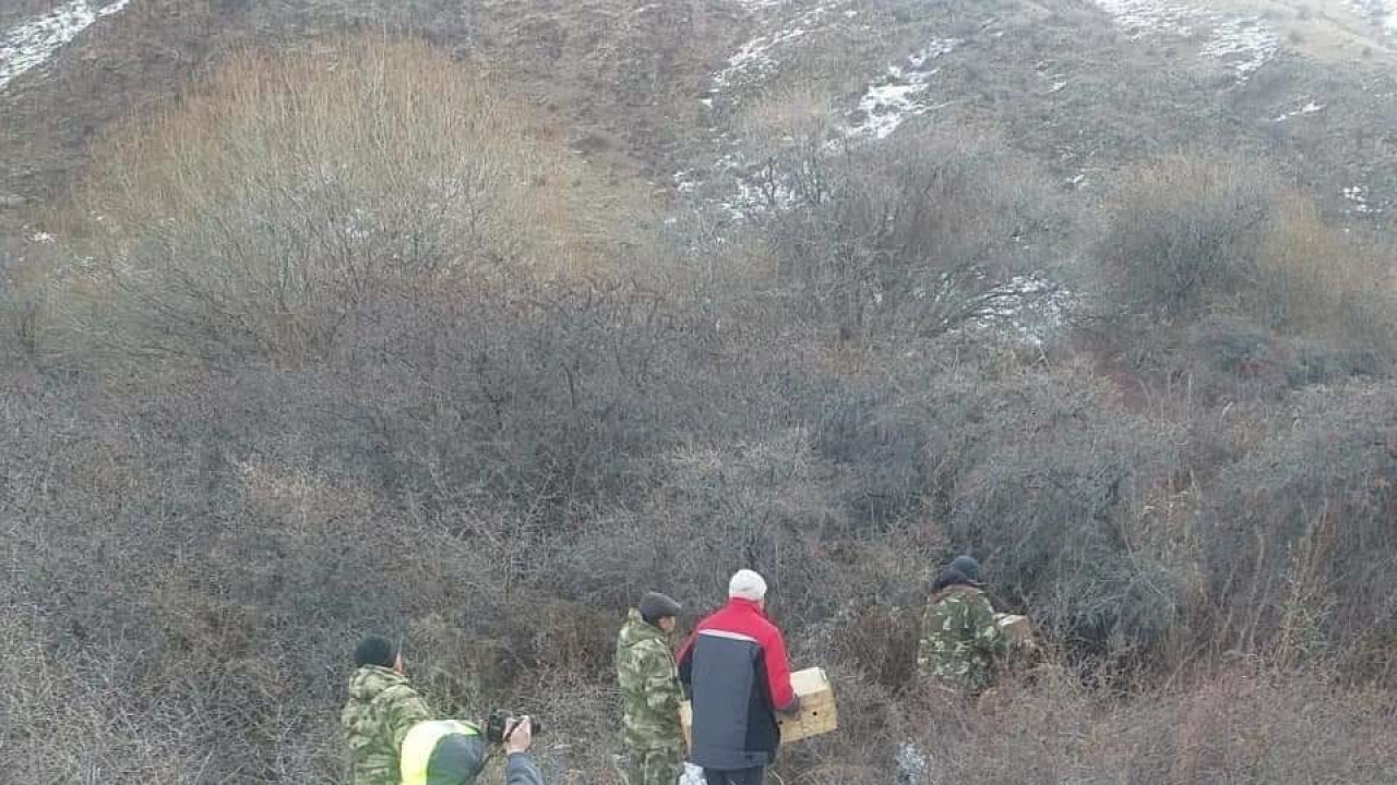 Фазаны разновидности семиреченских которые были привезены из Манасского района Таласской области были выпушены в лесу возле реки Чон-Чычкан.