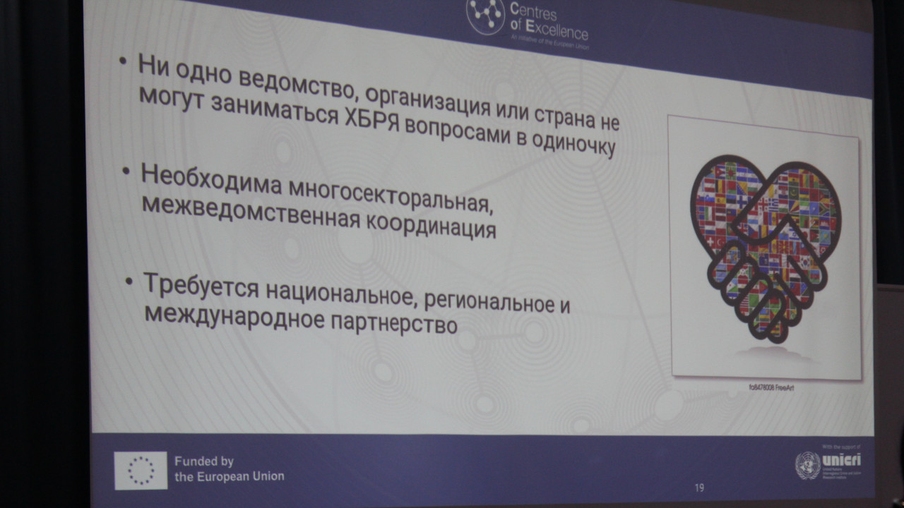 Особое внимание было уделено разработке Национального Плана Действий, который направлен на укрепление потенциала по снижению химических, биологических, радиационных, ядерных рисков в Кыргызской Республике.