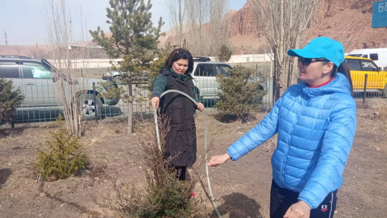 После окончания субботника, сотрудники Министерства передали участок с саженцами на баланс мэрии города Нарын.