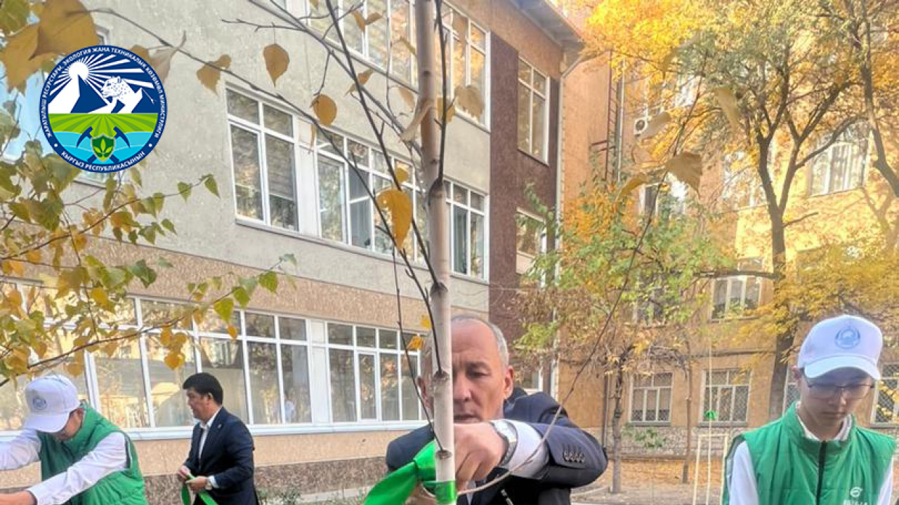 Министр природных ресурсов, экологии и технического надзора Кыргызской Республики М. Машиев посетил школу №12 имени Л. В. Толстуновой и принял участие в мероприятии по озеленению.